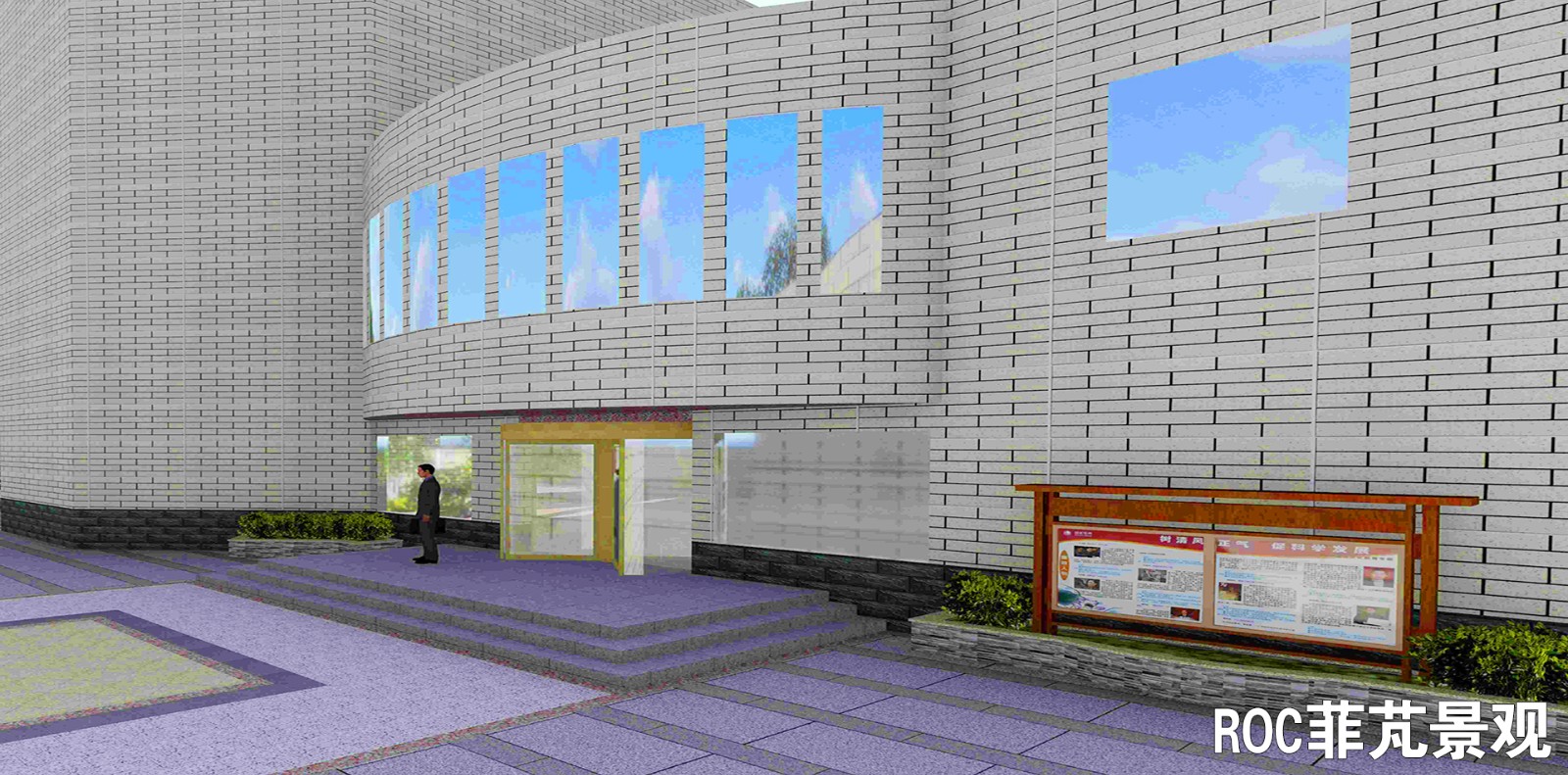依據(jù)現(xiàn)場的情況,業(yè)務(wù)入口處平臺加大,入口對面設(shè)計(jì)一處景,增加設(shè)計(jì)美感,在整個(gè)布局的中心位置設(shè)計(jì)一處花壇,形成對景。