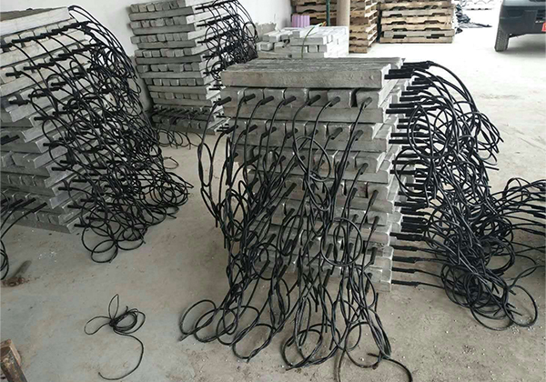 以上的鎂合金犧牲陽極也可以經(jīng)組裝后提供給客戶。裸陽極首先和電纜連接,連接部位 用環(huán)氧樹脂密封。然后加填充料封裝在棉布袋里。