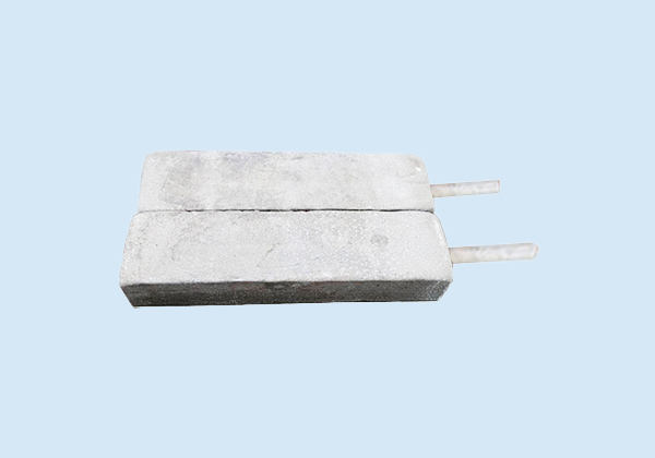 根據(jù)電化學原理,從鎂合金陽極材料體上通過土壤、水等電解質向被保護體如鋼質結構提供陰極電流,使被保護的鋼質結構進行陰極化,實現(xiàn)陰極保護。隨著電流的不斷流動,陽極材料不斷消耗掉。這就是犧牲陽極名稱的由來?!〕商祖V犧牲陽極,由鎂犧牲陽極錠1支,一根VV-10㎜2電纜3米,填包料50kg,棉布口袋1條,塑料編織袋1條組成。即棉布口袋內(nèi)有鎂犧牲陽極錠1支其鐵芯上焊VV-10㎜2電纜3米1根,焊接處做絕緣處理,并套有熱縮管。鎂犧牲陽極錠周圍均勻分布50kg填包料。棉布口袋外套塑料編織袋1條。